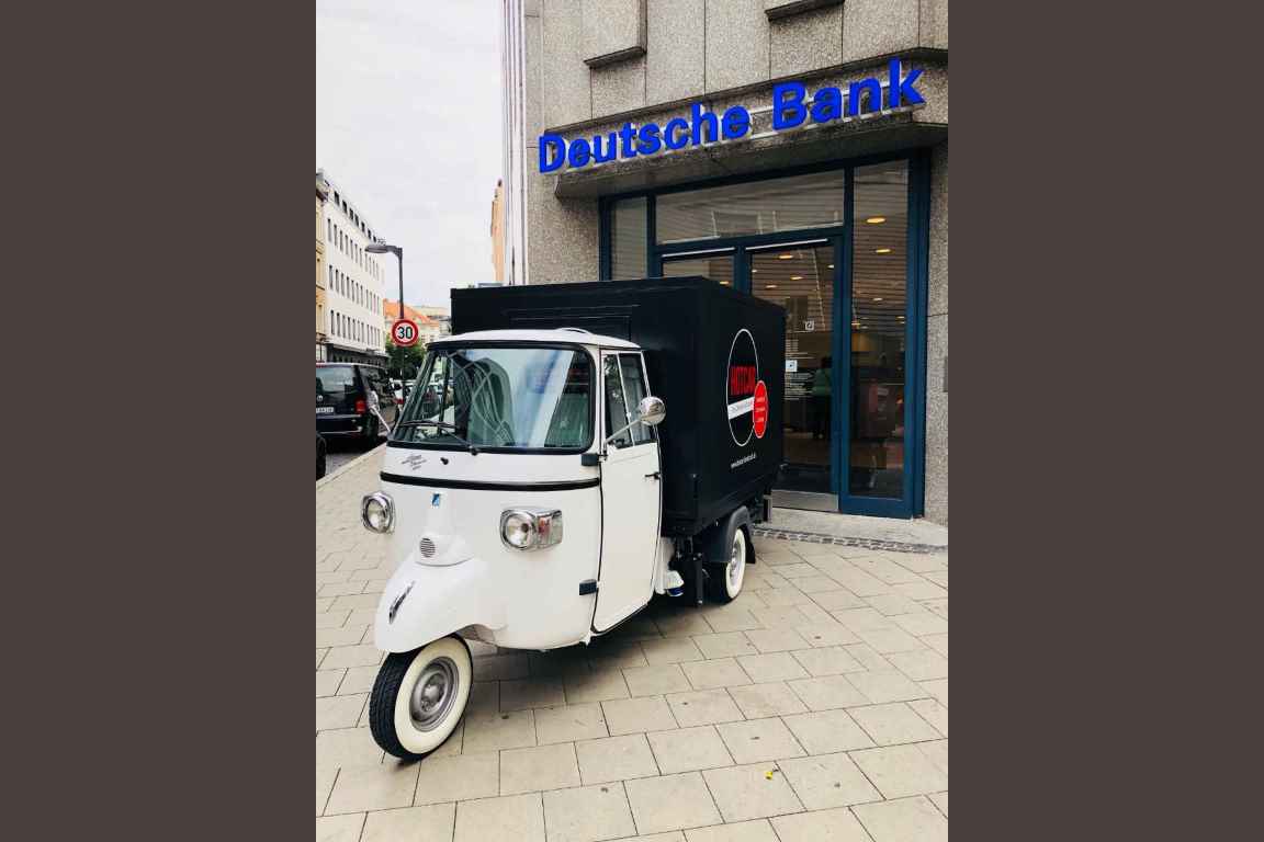 Eine außergewöhnliche Veranstaltung hatten wir bei der neu renovierten und umgebauten Deutsche Bank Filiale in Brauschweig. Bei dieser Location nutzten wir die geringen Abmessungen vom HOTCAR Foodtruck und fuhren kurzerhand direkt in die Deutschen Bank Filiale, um ein Catering für 60 Mitarbeiter zu veranstalten. Diese wurden auch dazu eingeladen, selber mit in den Foodtruck beim Zubereiten und anrichten von Pulled Pork Burger und Crème brûlée zu helfen und bekochten somit an diesem Tag ihre eigenen Kollegen.
